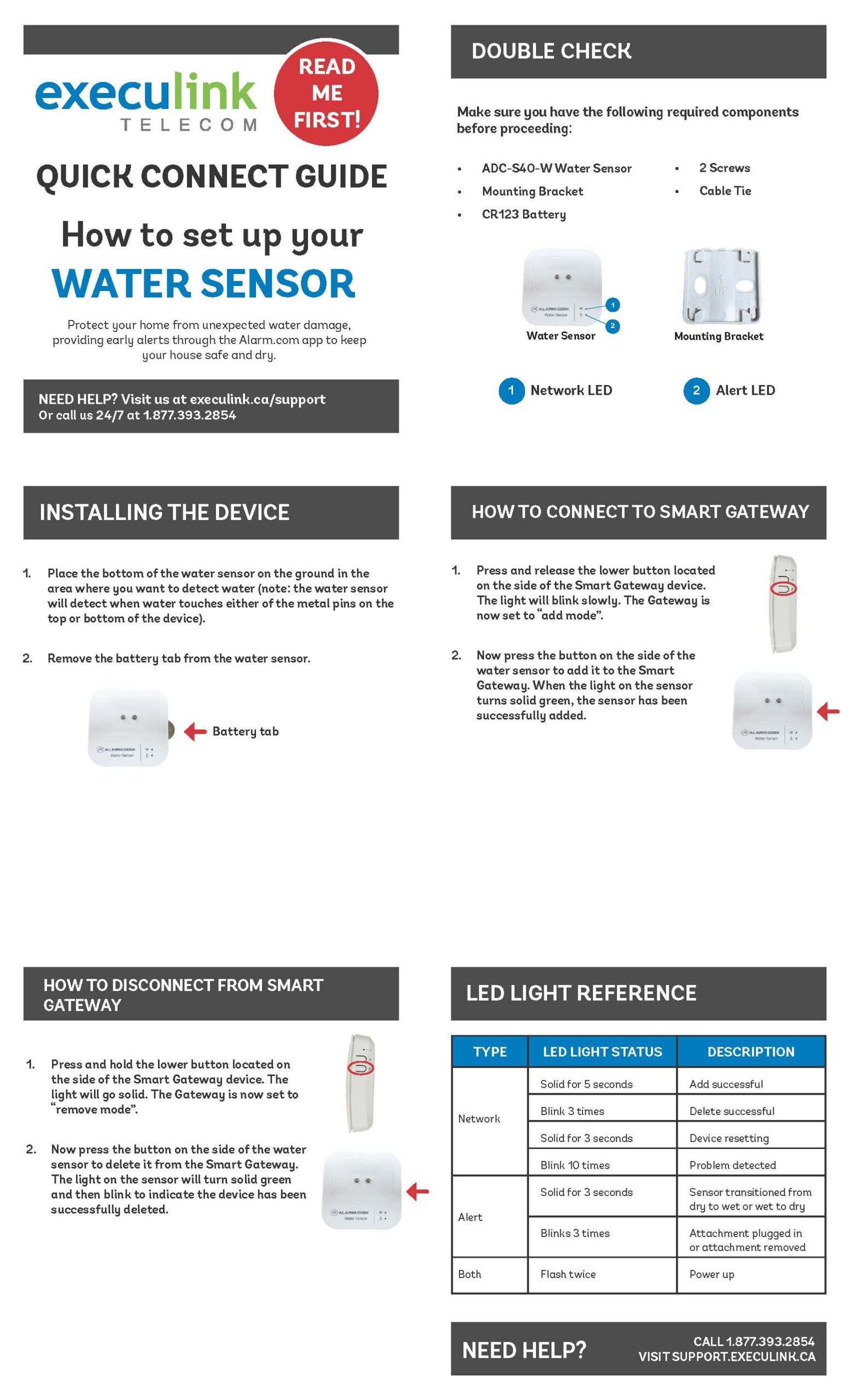 Let’s get your Smart Home Water Sensor set up so you can start your awesome Smart Home experience! Follow the steps in the guide below to complete your installation. Thank you for choosing Execulink’s Smart Home services!